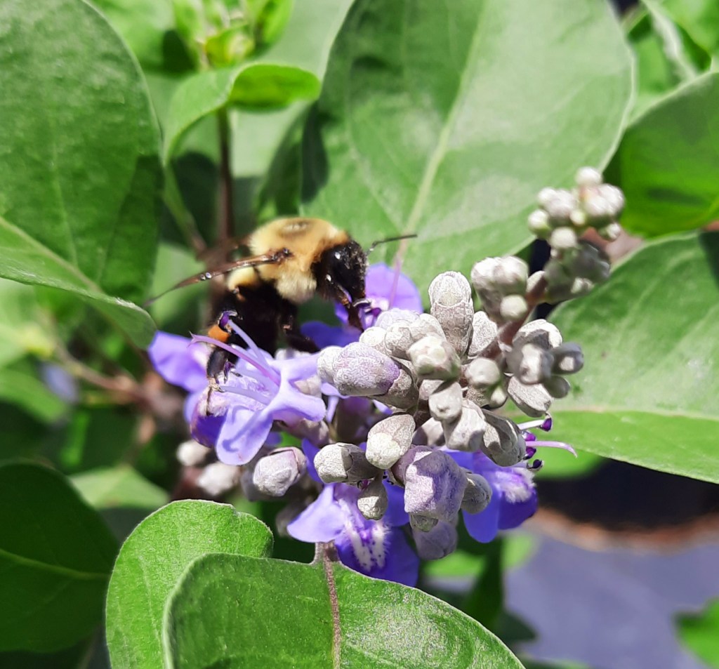 - Vitex- Various types of bees from bumblebees to solitary bees, love the blooms on this shrub. It’s a vigorous grower and makes a great pollinator hedge.