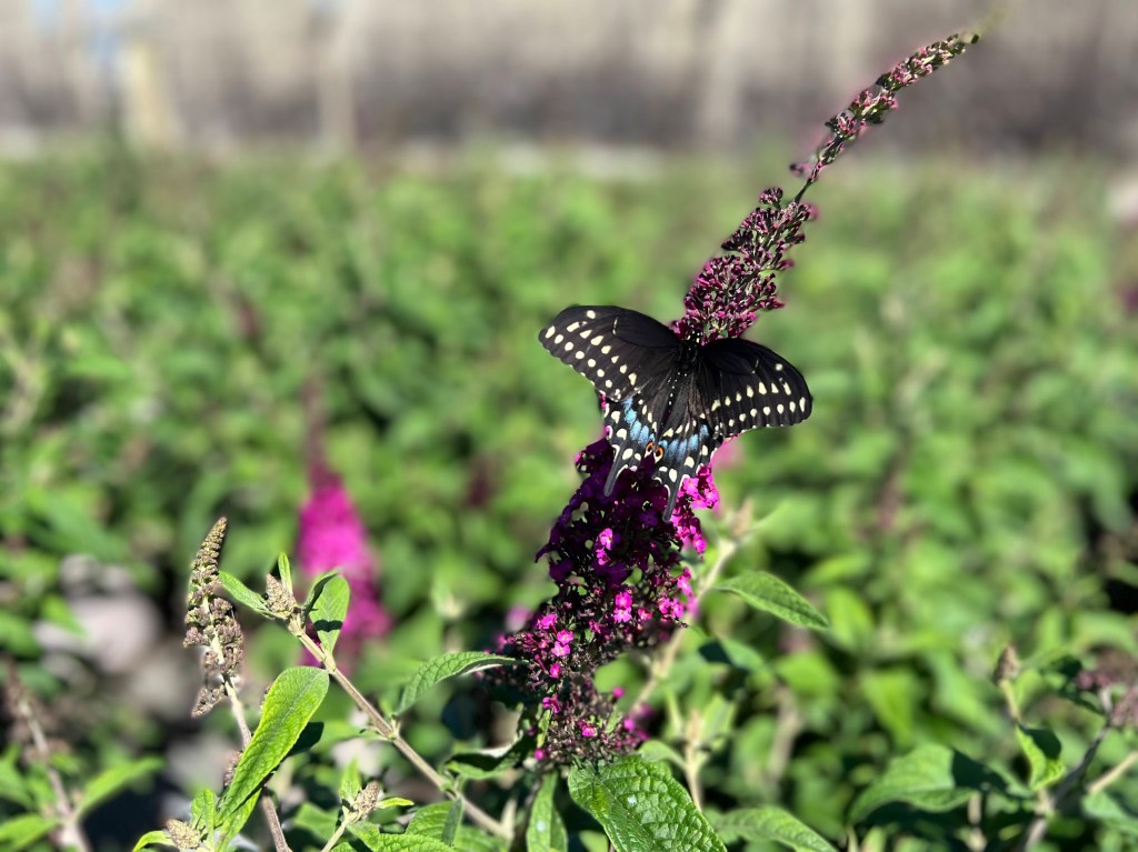 - Purple Porter Weed- A fast growing shrub that provides brilliant purple flower spikes that bring both bees and butterflies, but also ladybugs which are beneficial insects!
