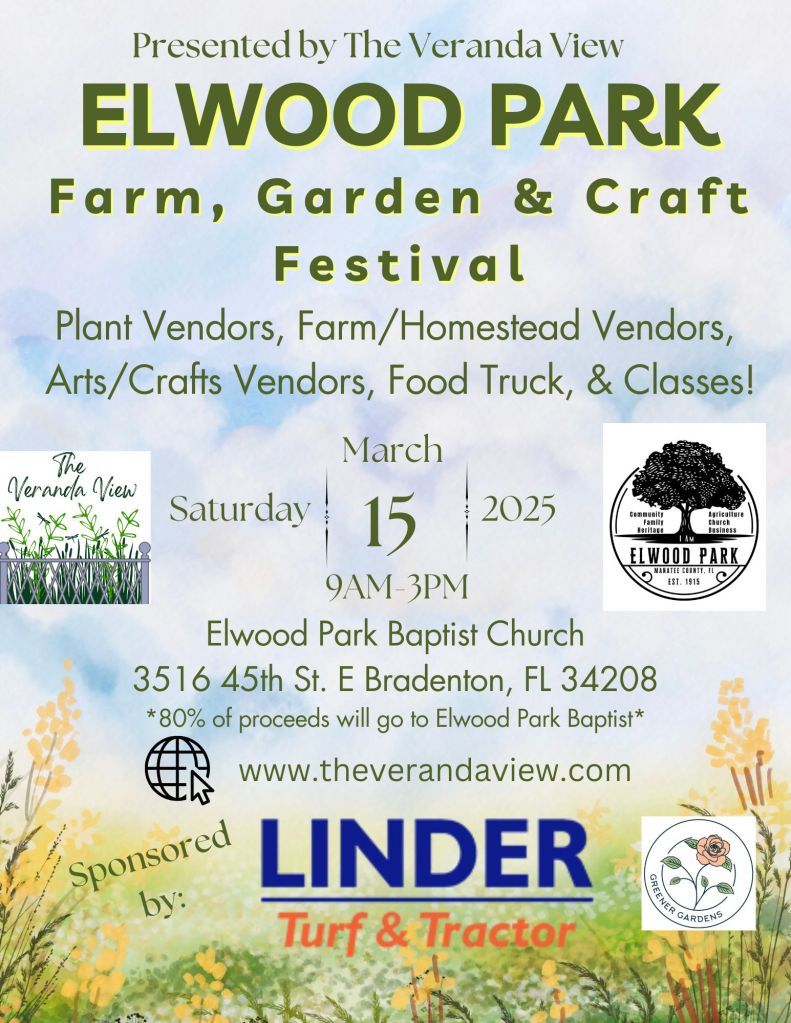 The Suncoast has a multitude of agriculture, horticulture, and related businesses and vendors who do amazing work in our community. We wanted to highlight and celebrate these businesses through our festival! The Bradenton/Sarasota area is also known as the Culture Coast, which is why the arts is a part of this great event! The festival will feature plant, farm & homestead, craft & art vendors! We will also host gardening classes (see below!) with amazing, truly talented folks. We will have a Food Truck for when your stomach starts to growl! Come experience the wonderful community of Elwood Park and the incredible vendors!